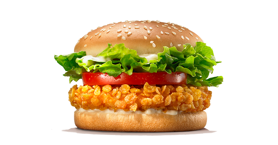 100% цельная куриная грудка в панировке со свежими овощами, заправленная майонезом на мягкой булочке.