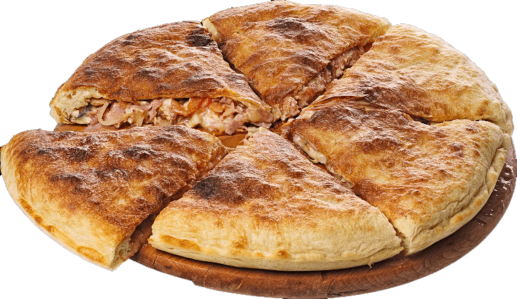 Пицца-пирог с мясным фаршем, картофелем, сыром гауда и зелёным луком